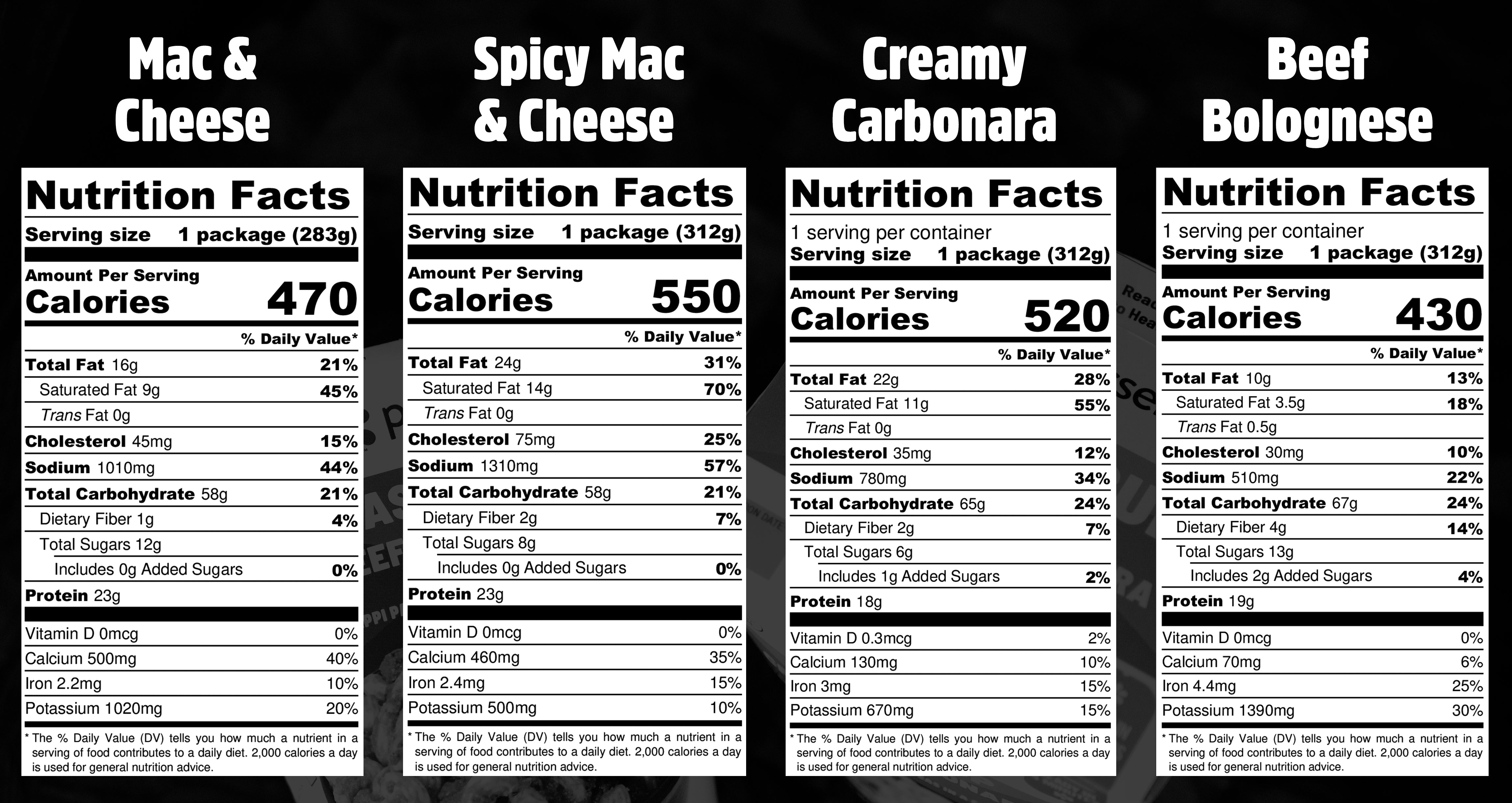 Each single-serving cup contains fresh (never dried) pasta and delicious sauces & toppings. Just peel the label, throw a cup in the microwave, and enjoy a fresh and delicious meal.